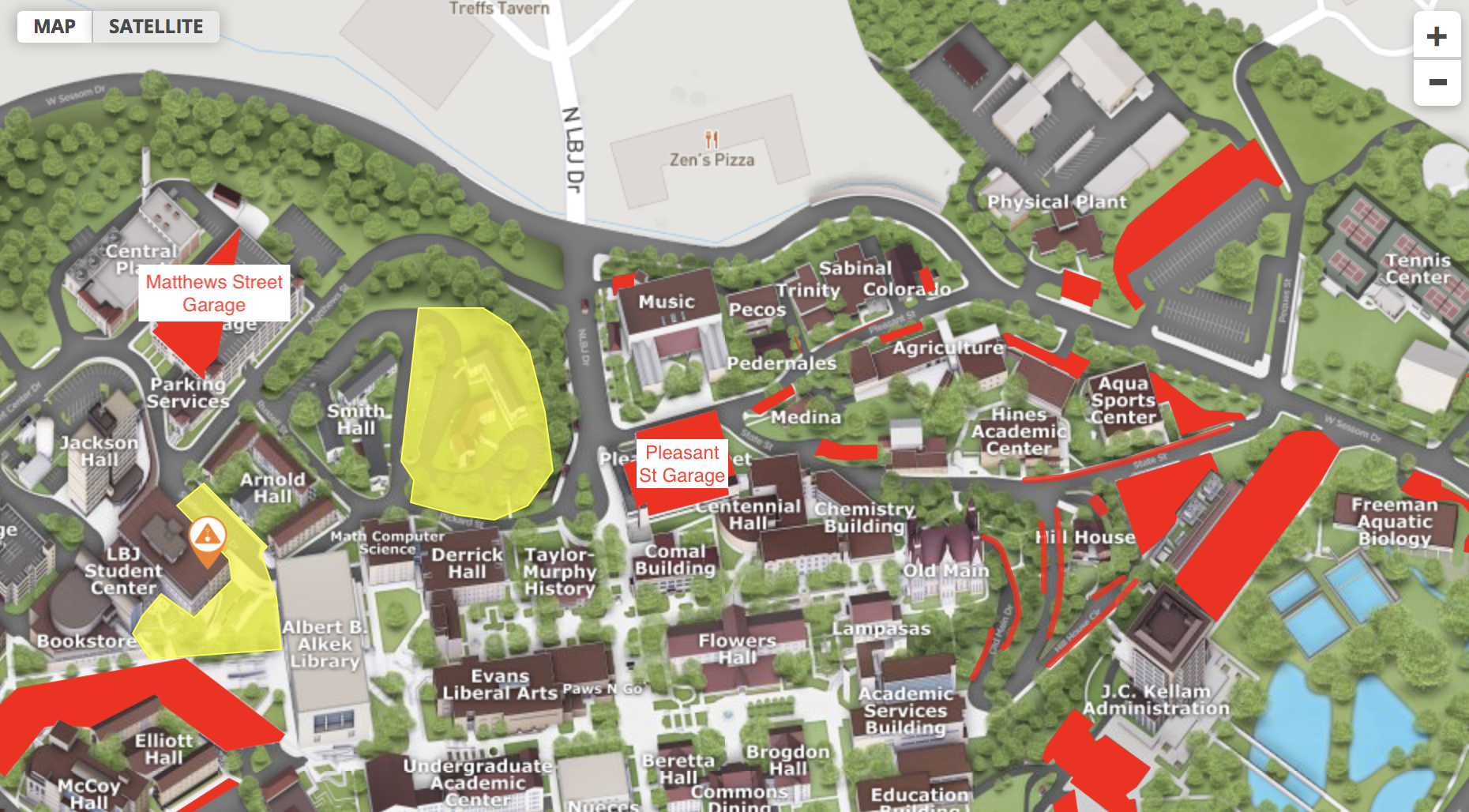 Parking on campus is tight, so we recommend car pools. Do not park in the retail area across the street from the Music Building or your car will be towed. If you have mobility issues, please email the local arrangements coordinator Rebecca Eaton (re20 at txstate dot edu) by February 4 as we can acquire a limited number of paid ADA parking spaces adjacent to the Music Building with advance notice.